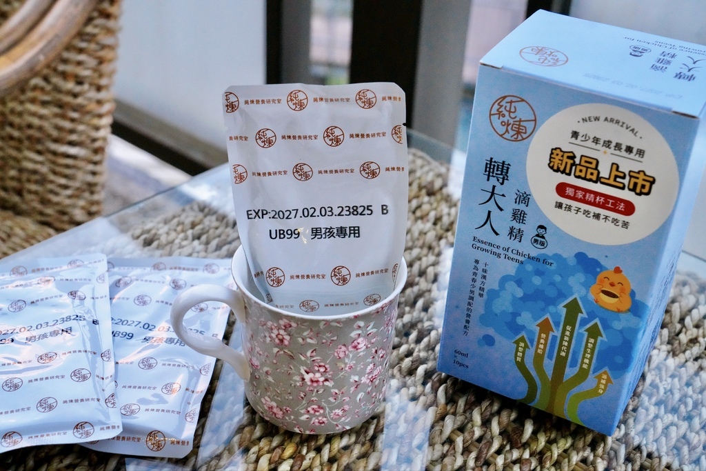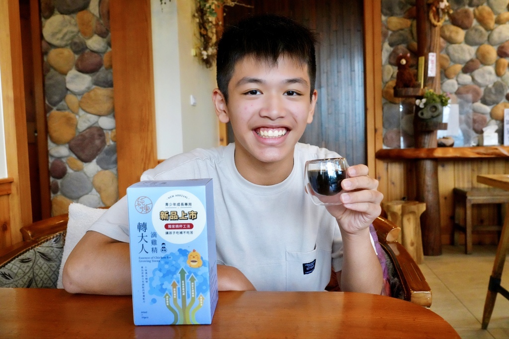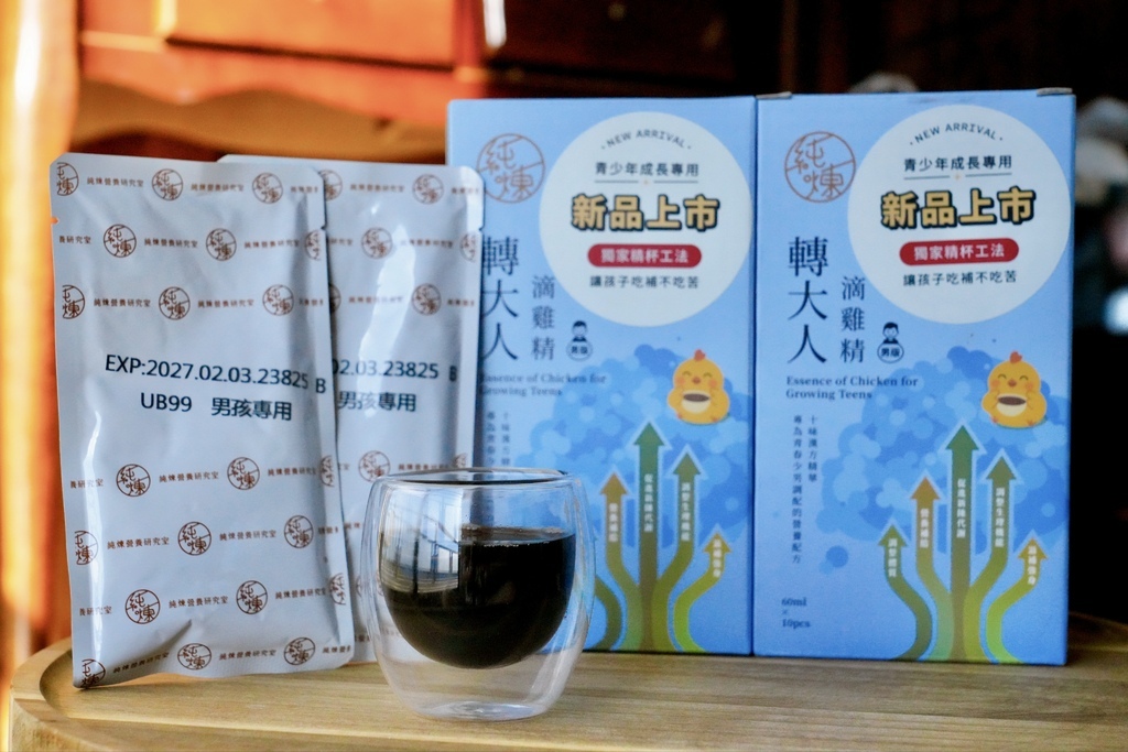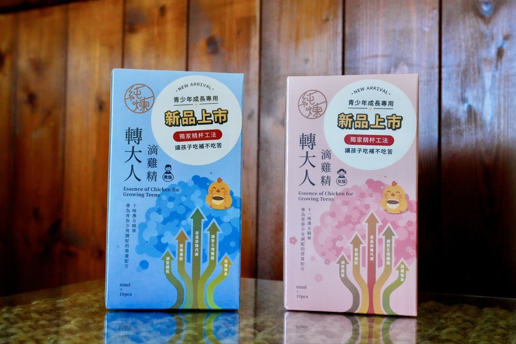 這次我們喝的新品「轉大人滴雞精」,就是專為進入成長黃金期的孩子設計。