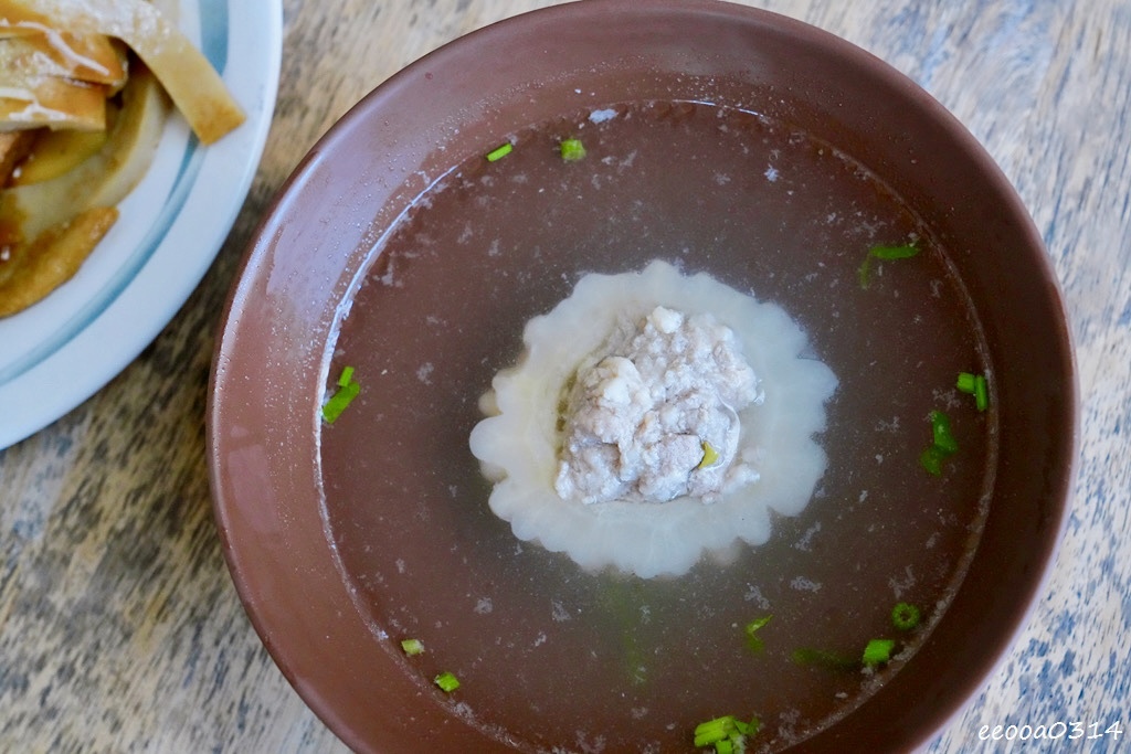 這碗湯是許多老客人的愛,湯頭清甜、苦瓜香氣自然,裡頭的苦瓜封吸滿湯汁,口感綿密滑嫩,入口後微苦回甘,是夏天最解膩的暖湯。