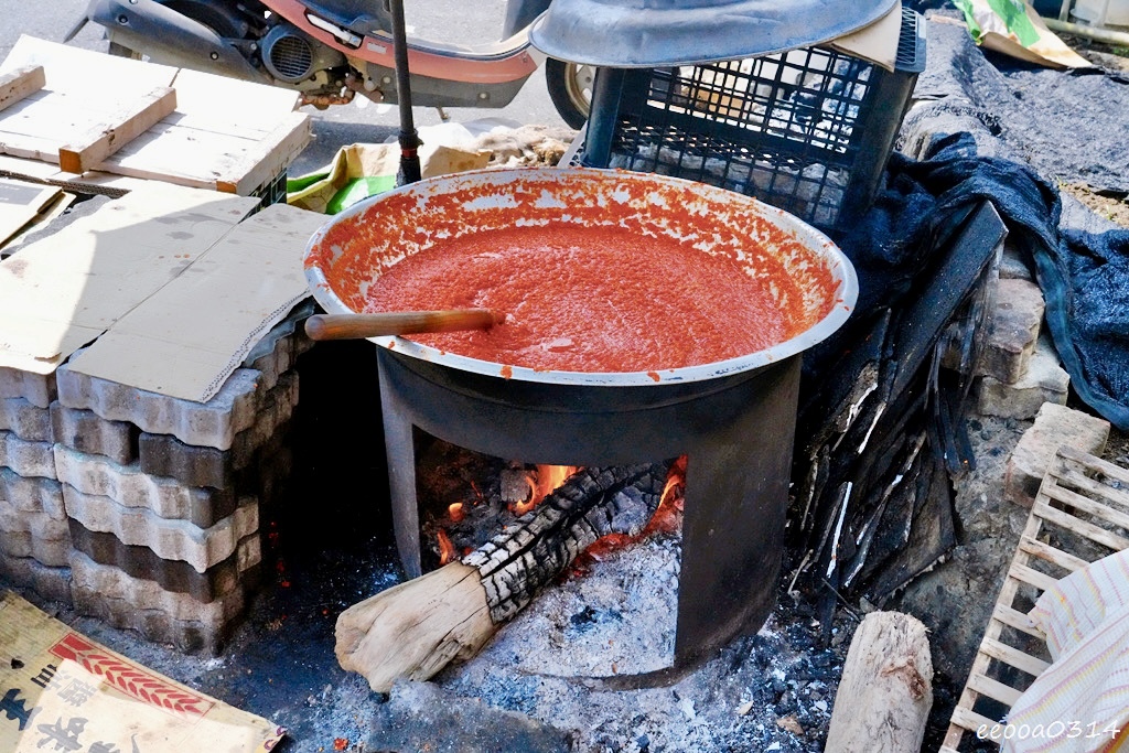 走近店門口,最吸引人目光的莫過於那一大鍋柴燒相思辣椒。店家就在門外架起大鍋,用木柴慢火熬煮,一陣陣辣椒與柴香味隨風飄散,整個畫面充滿古早意境。
