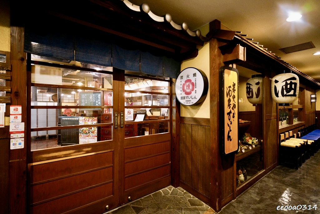 check in 後我們就到旁邊的 Aeon Mall Kyoto 超市逛逛採買。逛完後,想找間可以放鬆吃宵夜的地方,於是選了這家位於京都車站旁、步行2分鐘就能到的 「炭火焼 酒房すいしん 京都駅前店」。