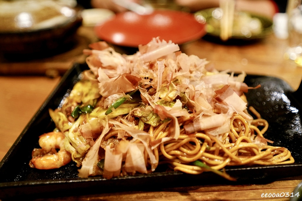 鐵板炒麵香氣超迷人,麵條Q彈不軟爛,帶點焦香與醬香,是經典的日式宵夜味道。