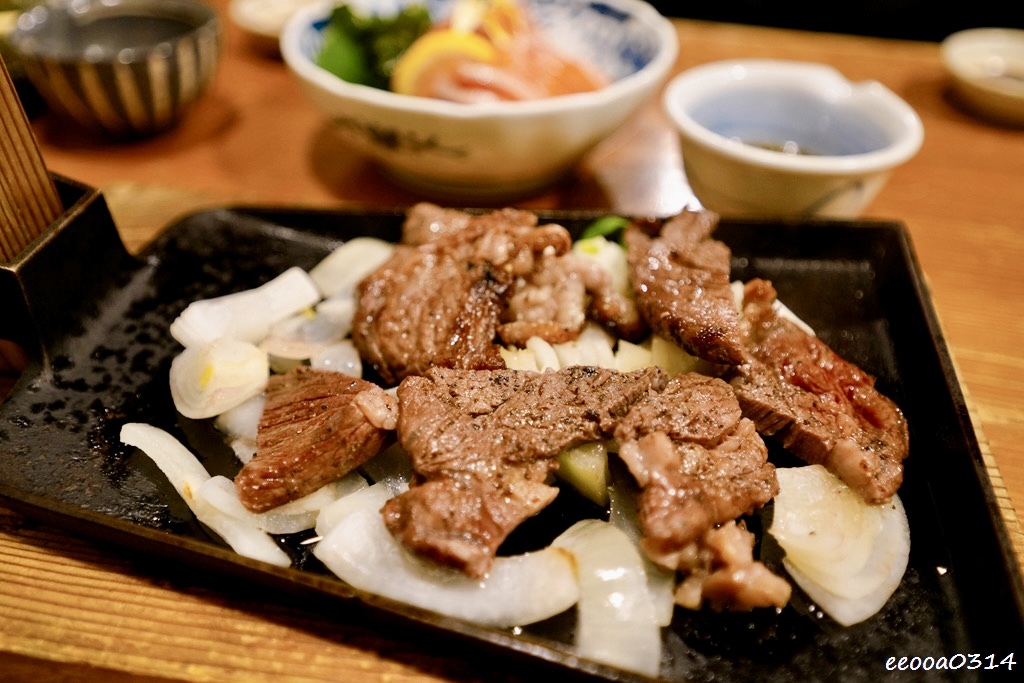 炭火烤牛肩肉外層微焦、肉質軟嫩,咬下去滿滿肉汁香氣。搭配鹽或洋蔥吃最對味。