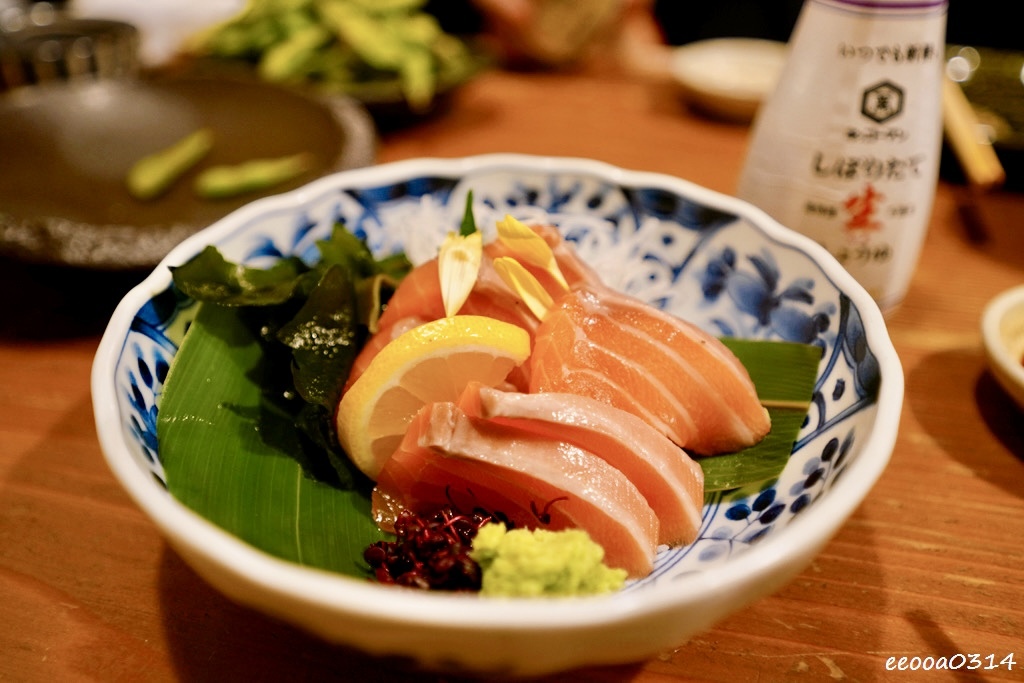 鮭魚生魚片厚度剛剛好,油花漂亮、口感滑順新鮮。