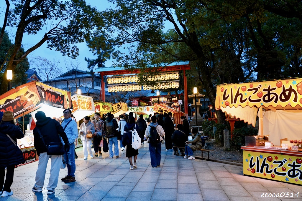 八坂神社這裡比我預期中還熱鬧許多,有不少小吃攤,像台灣廟口市集但規模較小且很日式。