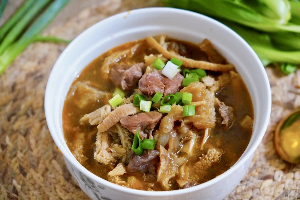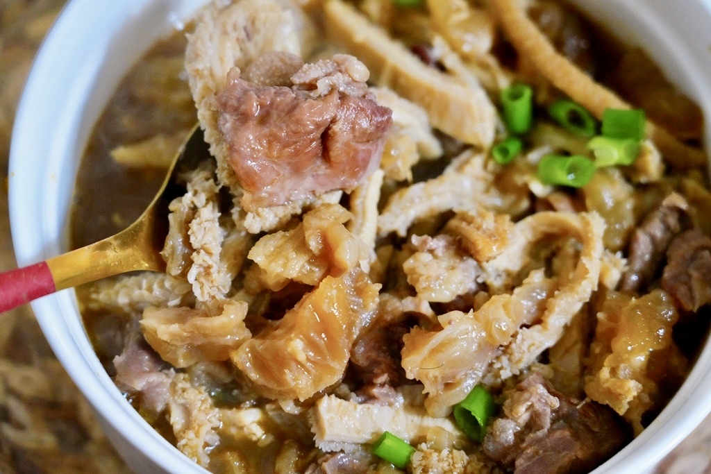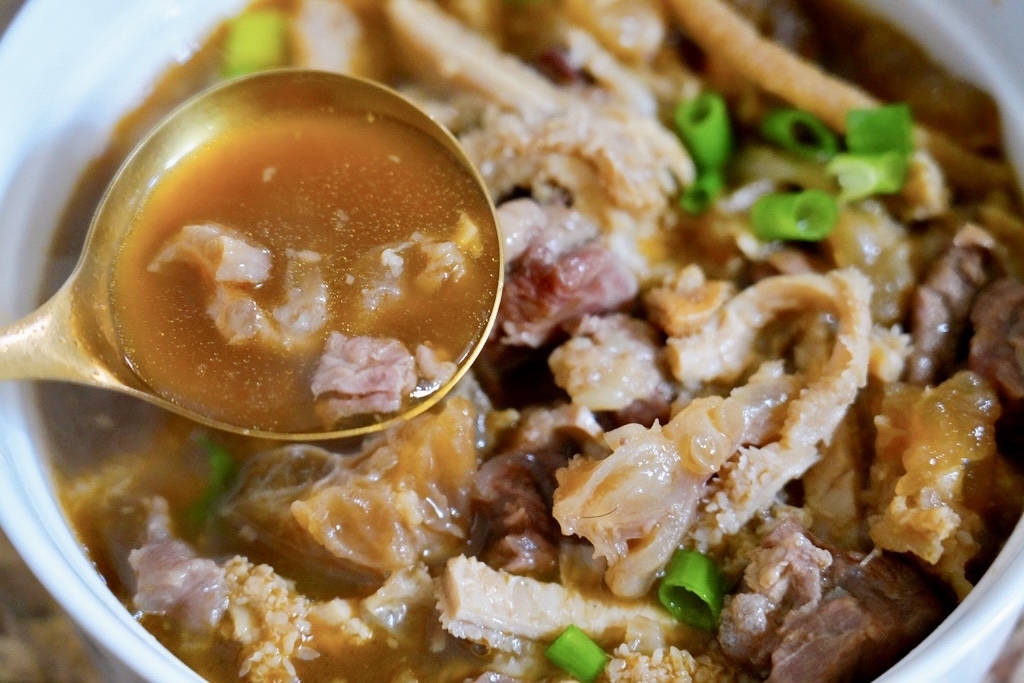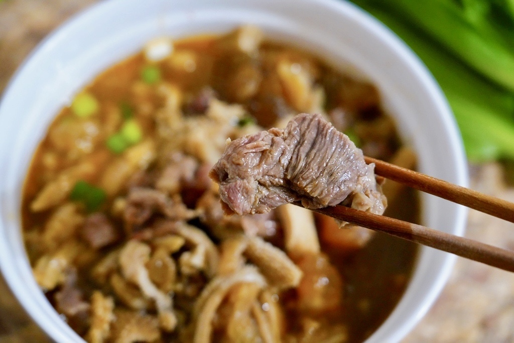 湯頭呈現琥珀色,香氣迷人又濃郁,但喝起來又不會油膩。牛肉、牛筋、牛肚都已經燉得恰到好處,完全不用再調味。